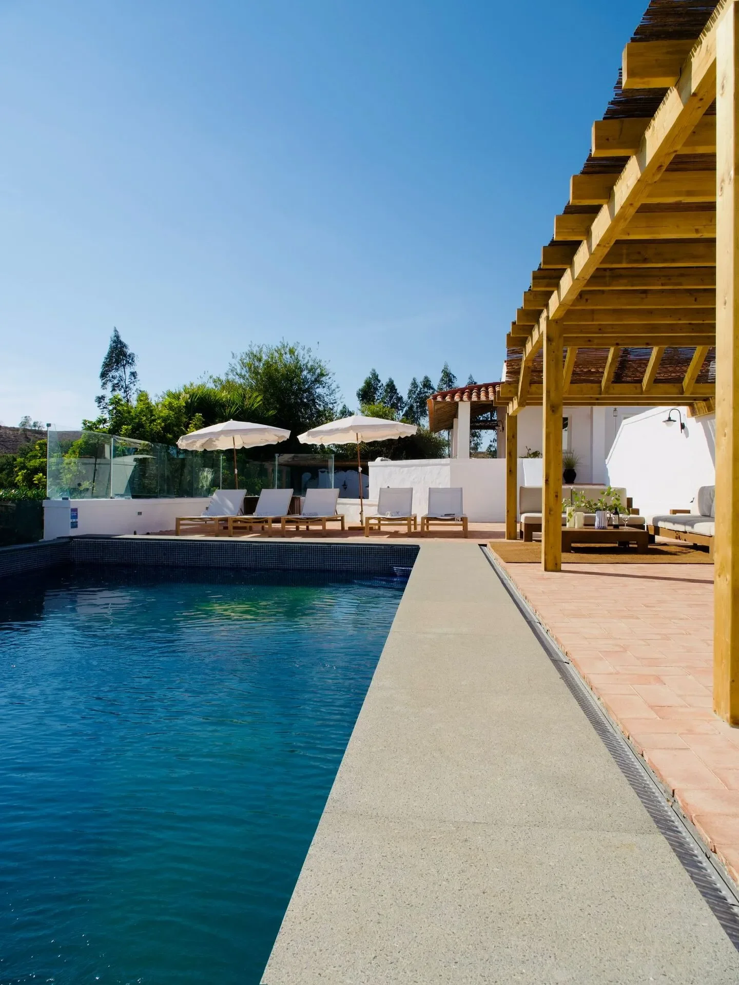 Set in a stunning private villa featuring six bedrooms and four bathrooms, guests can enjoy a pool, tennis court, outdoor wood-fire area, and multiple lounging areas. Just steps from the Atlantic Ocean, you’ll have access to Praia da Galé the perfect for lounging, surfing, or even horseback riding along the coast.